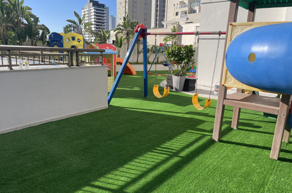 A grama sintética proporciona um espaço verde durante todo o ano, sem a necessidade de rega, corte ou fertilização. É ideal para jardins, áreas de lazer, playgrounds e até mesmo áreas internas.